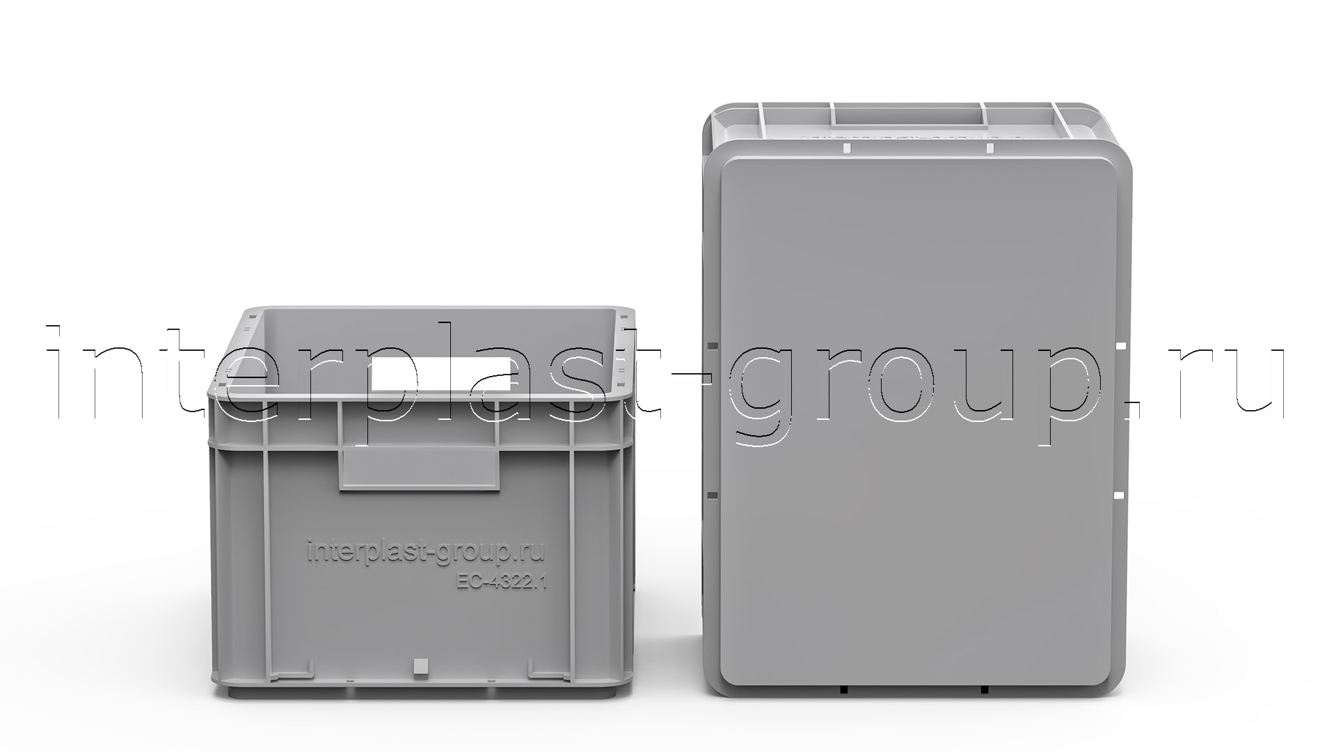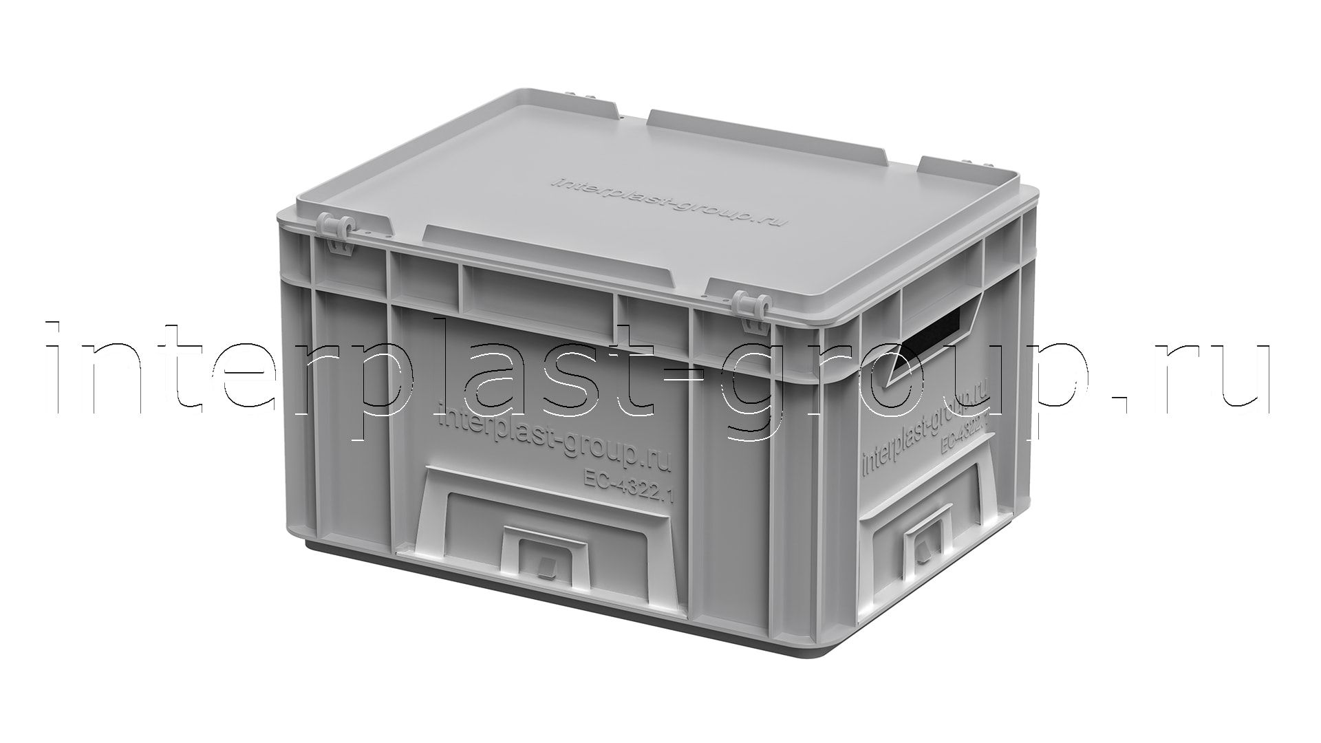 Евроконтейнер открытые ручки/сплошное дно (серый), 400x300x220 мм