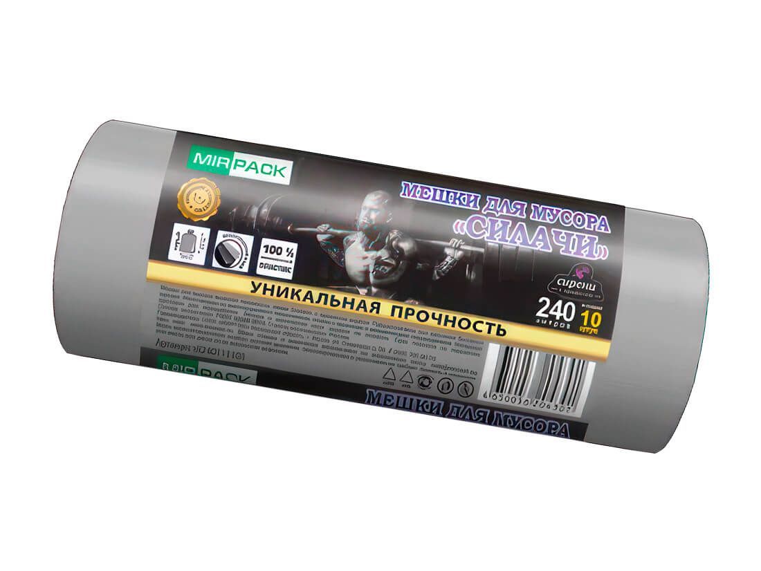 Мешки для мусора "СИЛАЧИ" объемом 240 литров, ароматизированные и серого цвета, предназначены для эффективной утилизации крупных объемов отходов. Изготовленные из прочного полиэтилена высокой плотности (ПВД) толщиной 40 мкм, они обеспечивают надежность и устойчивость к проколам.