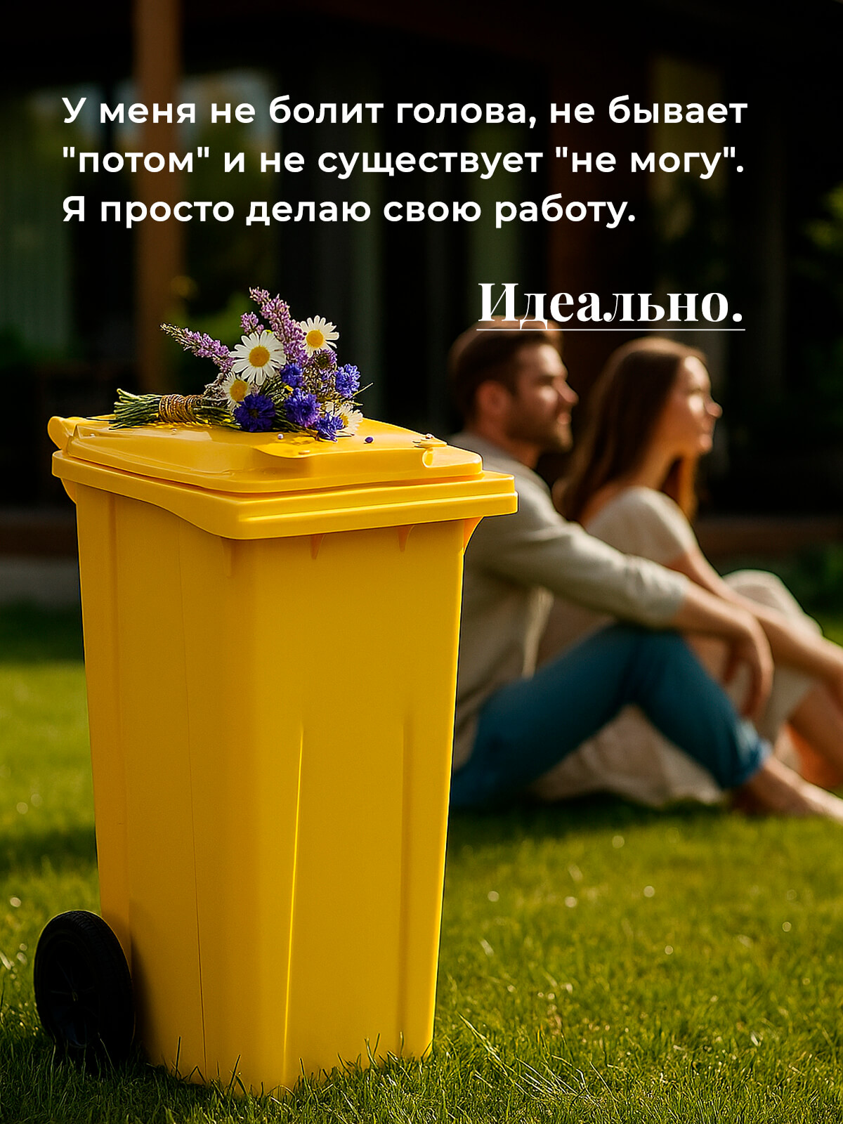Благодаря прочным колёсам контейнер легко перемещается по любой поверхности. Корпус из первичного ПНД выдерживает морозы, удары и воздействие ультрафиолета, а плотная крышка надёжно удерживает запахи и защищает от осадков.