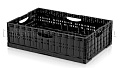Складные ящики разработаны и спроектированы для хранения и перемещения плодо-овощных культур как внутри производства, так и между торговыми точками и складами. Благодаря функции складывания значительно экономят место при использовании в качестве возвратной тары. Перфорированные стенки обеспечивают сохранение свежести и сочность продуктов перфорации абсолютно на всех стадиях логистики. Штабелируются на паллетах 1200х1000 и 1200х800.