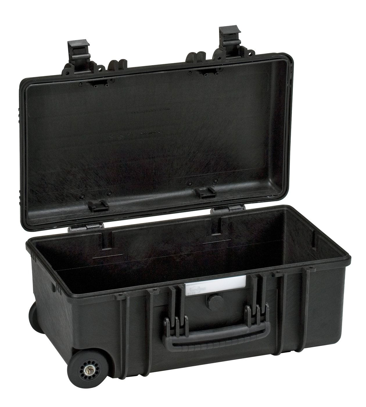 Тяжелые кейсы с колесами и телескопической ручкой. Уплотнительное кольцо и съемная крышка. Поставляется пустым или с поропластом в нижней части и в крышке. Самосмазывающиеся свободно вращающиеся колеса.